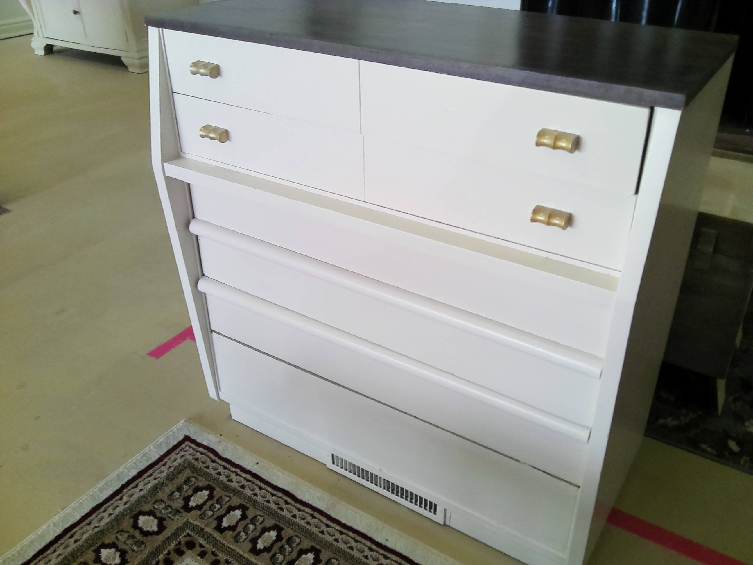 Drawers glide properly and it also has its original hardware.